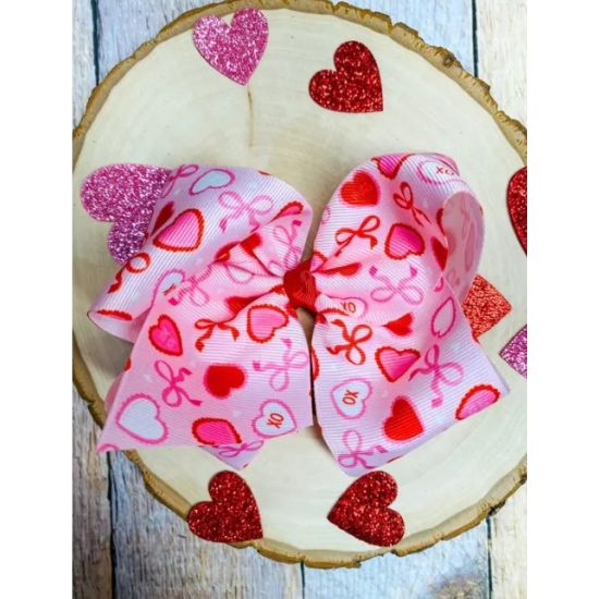 Valentine Candy Hearts Girls Hair Bow – 5.5”