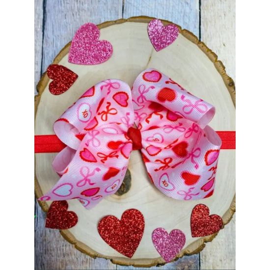 Girls Valentine Candy Hearts & Bows Hair Bow Headband