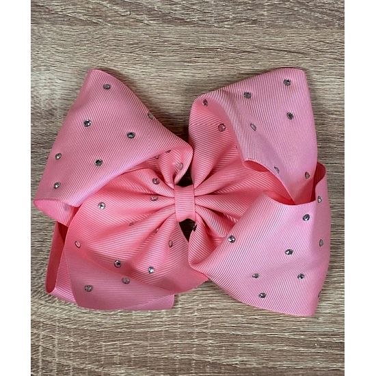 Girls French Pink Rhinestone Hair Bow – 5.5”