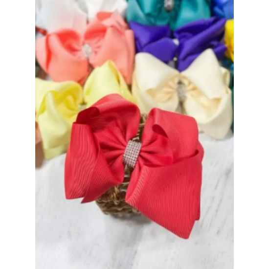 Girls Red Oversized Rhinestone Center Knot Hair Bow